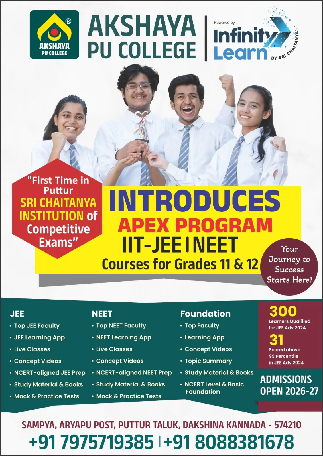 Akshaya PU College (est. 2025), located in the educational hub of Puttur, Karnataka, is founded by experienced educators with a passion for academic excellence.